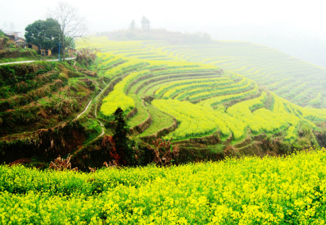 大埔油菜花山梯田始建于明中期,完工于清初,距今有400多年的历史,共有1200多亩,沿一座座山坡层层迭迭,蔚为壮观,从山脚连到山顶,从此山连到彼山,延绵不断,少的数十级,多的有千多级。