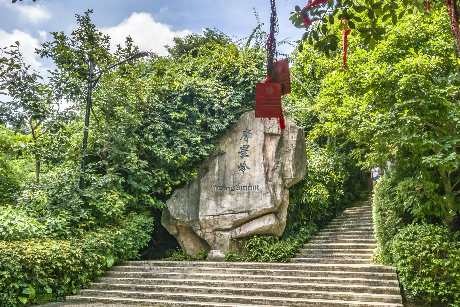 摩星岭景区摩星岭原名碧云峰,位于白云山苏家祠与龙虎岗之间,是白云山最高峰,海拔382米,是白云山三十多座山峰之首,从栖霞岭可达摩星岭门楼。宋、明以前,没有“摩星岭”之名,只有第一山之称,康熙修《广东志》绘白云山图在卷首称此山峰为“摩星岭”,名曰“天南第一峰”,从此得名摩星岭。