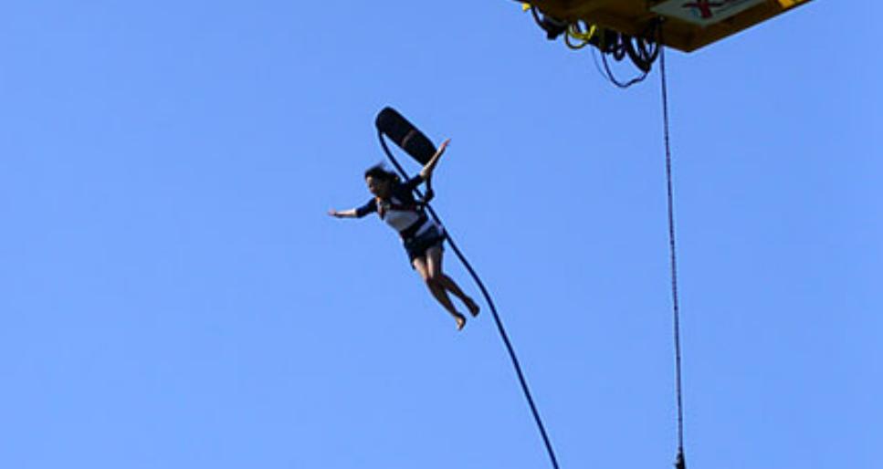 在绝对保证安全的前提下,参与者从50米高瀑布岩石上往下跳,其惊险性刺激性是其他高空弹跳无法比拟的。