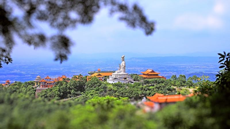 观音山,海拔仅70余米,方圆面积达92万平方米,内有三个人工湖。区内冈峦起伏,树木葱笼,山光水色,景色迷人。