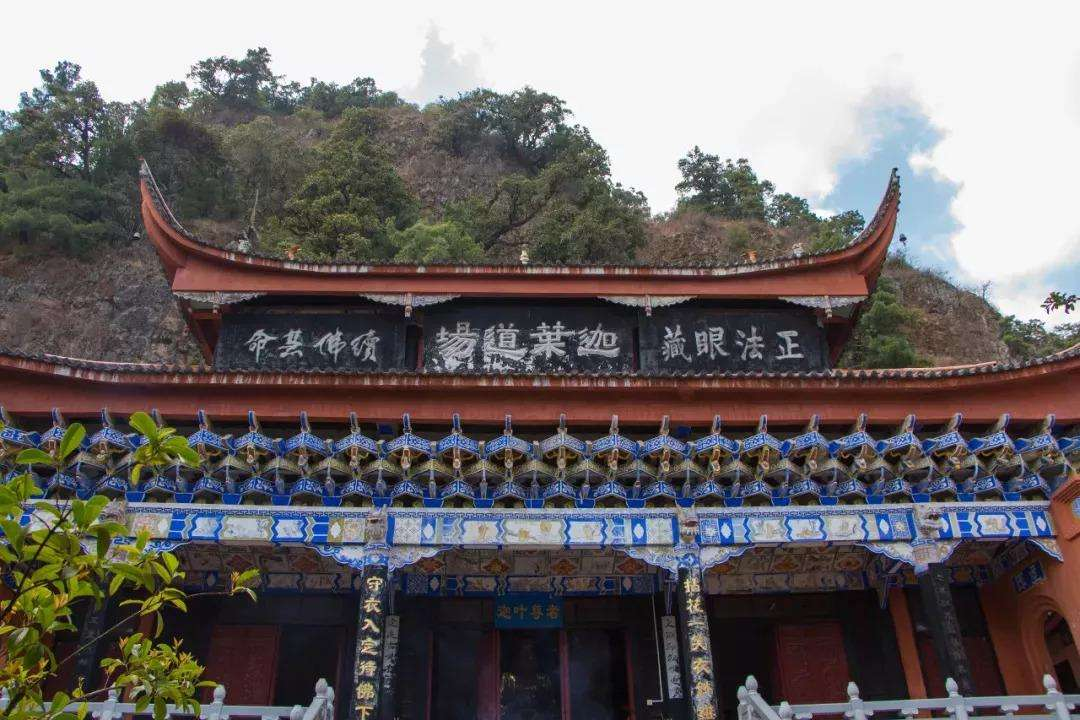 迦叶殿也叫迦裟殿,位于鸡足山天柱峰半山腰的东面,传说鸡足山的开山祖师饮光佛迦叶尊者在殿内的大盘石上守衣入定500年而得名。也就是这样的原因,迦叶殿在鸡足山众多的庙宇中占有举足轻重的地位,被称为“山中第一寺”和“山中诸寺之祖庭”。