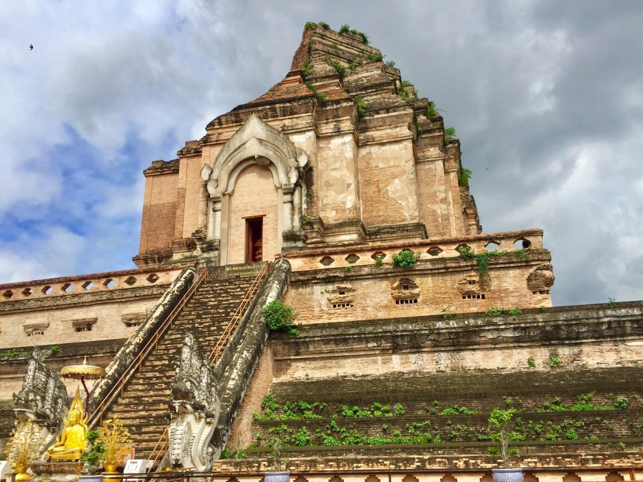 鸡足山楞严塔位于宾川县县城西北30余公里外的鸡足山顶,鸡足山楞严塔为十三层密檐式空心方塔,塔高约40多米,塔内为七层,可以直接登临塔的顶层。楞严塔建筑雄伟,外形秀丽,远远望去,宛如一枝巨大的文笔立于佛教名山鸡足山金顶,在崇山峻岭间成为方圆数百里的一座显著的地理标志。楞严塔通体灰白,外观仿崇圣寺三塔的千寻塔,但塔身更为修长;最为特别的是,楞严塔第二级的四周安装了铁栏杆,有一道供人们登高远眺的走廊,每边走廊下有八个支撑的倒立三角结构,远远望去,如同为塔身装饰了一道稳重“裙边”,使楞严塔赋予了现代建筑的气息。