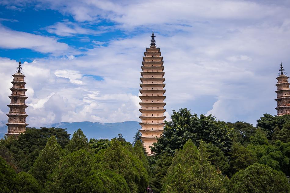 佛图寺塔,塔身方4.5米,四壁厚1.4米、中空1.3米。第一层至四层呈直砌,第五层开始逐层收分。双层东西设佛龛,南、北设券洞,与塔心贯通,逐层交替上升。塔身内空,为筒体结构,直通至十二级,塔门为方形洞门,洞门上用横木作过梁,这是南诏时古塔的特点之一。