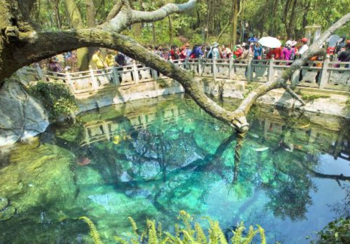 来到蝴蝶泉最大的看点是泉水本身,这里的泉水清澈见底,而且由于富含离子使得水呈现一种奇幻的蓝绿色,不时涌出一串串银色气泡。在泉水边有曲折的大树倒映水中,非常漂亮。