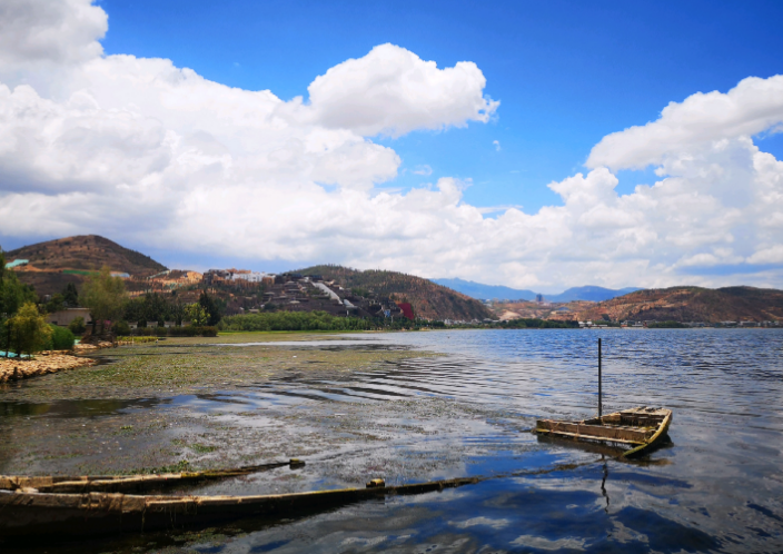 二、茈碧湖茈碧湖,又名宁湖,位于洱源县东北4公里的罢谷山下,因湖中生长一种珍贵的水生植物――茈碧花而得名;为地震陷落型的湖泊。湖呈陕长型,南北长6公里,东西宽1公里到2公里,总面积8平方公里,海拔2055.7米,平均水深20米;最深处达32米,主要水源为凤羽河与梅茨河。