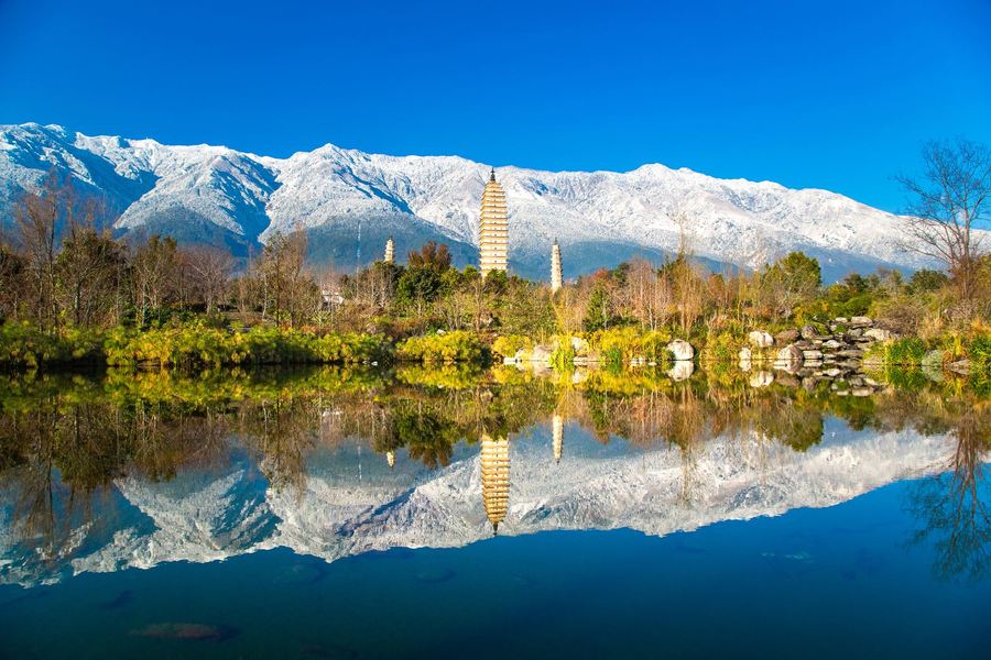苍山位于大理洱海西侧,风光极为秀美,其主峰的积雪风光巍峨壮观,是大理“风花雪月”四景之一。苍山山间云雾变幻莫测,有“望夫云”、“玉带云”等奇秀形状,登上山顶,还可以俯瞰洱海、大理的优美风光。