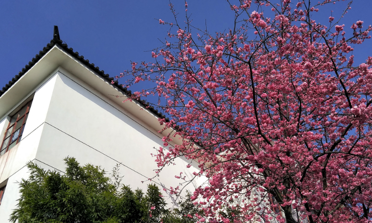 “樱花半开琉璃暖,青叶萋萋犹遮面。”即使在冬日,大理大学的樱花也是一种烂漫的粉色。