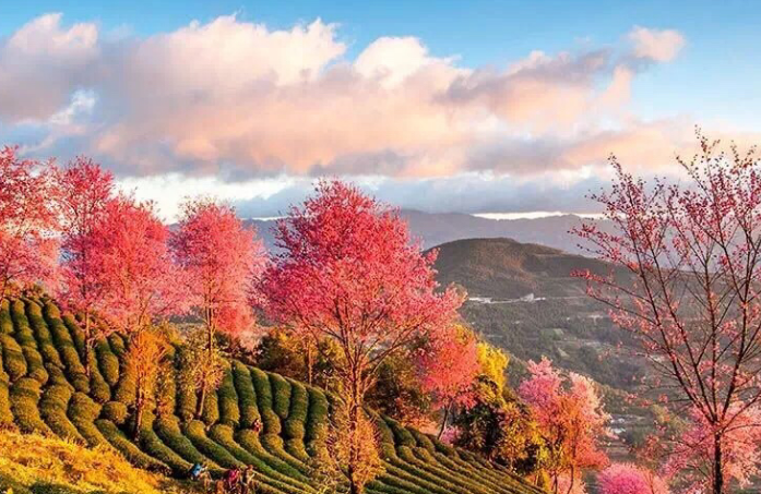 自驾游:昆明——南涧县(330公里)——小军庄红绿灯路口——老214国道(40公里)——景东和云县(11公里)——无量山樱花林。