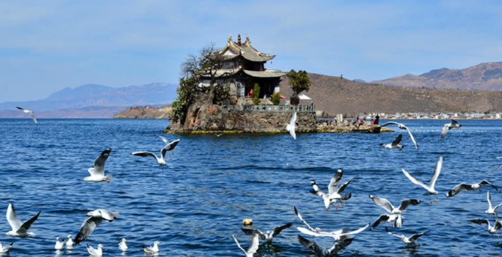 洱海有三岛、四洲、五湖、九曲之胜景,双廊处在“萝莳曲”、“莲花曲”两曲交界,居沙洲之上,沙洲又有南诏风情岛、玉几岛分列其左右,且“双曲”环抱“双岛”,故而得名双廊。