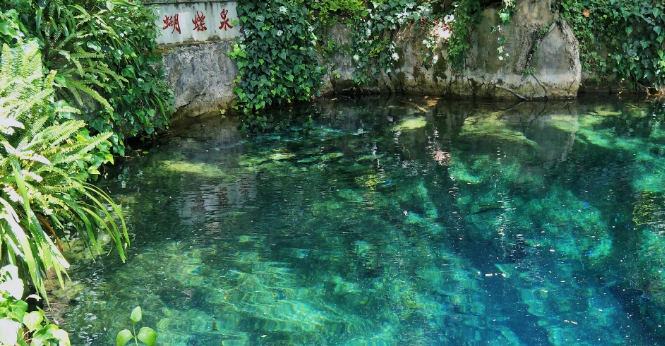 蝴蝶树在泉池西北角的池边有一棵苍劲的夜合欢古树,枝叶婆娑,树荫遮天蔽日,这就是蝴蝶树;横跨泉上,每当春末夏初,古树开花,状如彩蝶,且散发出诱蝶的清香味;其时蝴蝶群集飞舞,一只只“连须钩足”;从枝头悬至泉面,形成千百个蝶串,象一条条五彩缤纷的彩带。