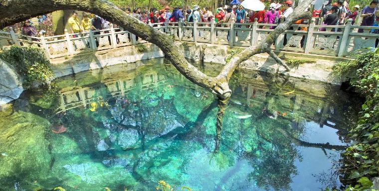 来到蝴蝶泉最大的看点是泉水本身,这里的泉水清澈见底,而且由于富含离子使得水呈现一种奇幻的蓝绿色,不时涌出一串串银色气泡。在泉水边有曲折的大树倒映水中,非常漂亮。