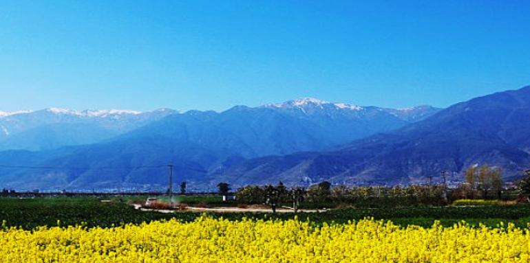 苍山风光秀美,主峰的积雪风光巍峨壮观,是大理著名的“风花雪月”四景之一。山腰间修有一条长约18公里的游山步道,称为玉带云游路,可俯瞰大理坝子和洱海风光。上苍山有乘坐索道和步行走登山步道两个途径,分别可达山腰玉带路上的清碧溪、中和寺和洗马潭。苍山山体雄厚,山路复杂,建议游览时不要偏离玉带路,否则误入深山极易迷路;海拔较高,早晚温度较低,建议上山时携带御寒衣物。