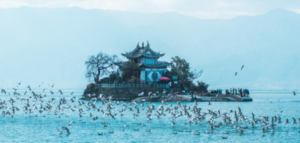 清晨龙龛码头的第一声鸟鸣划过寂静的长空时,海面上雾气慢慢升起;洱海边红黄绿相间的红水杉被披上了一层“薄纱”,如梦似幻。