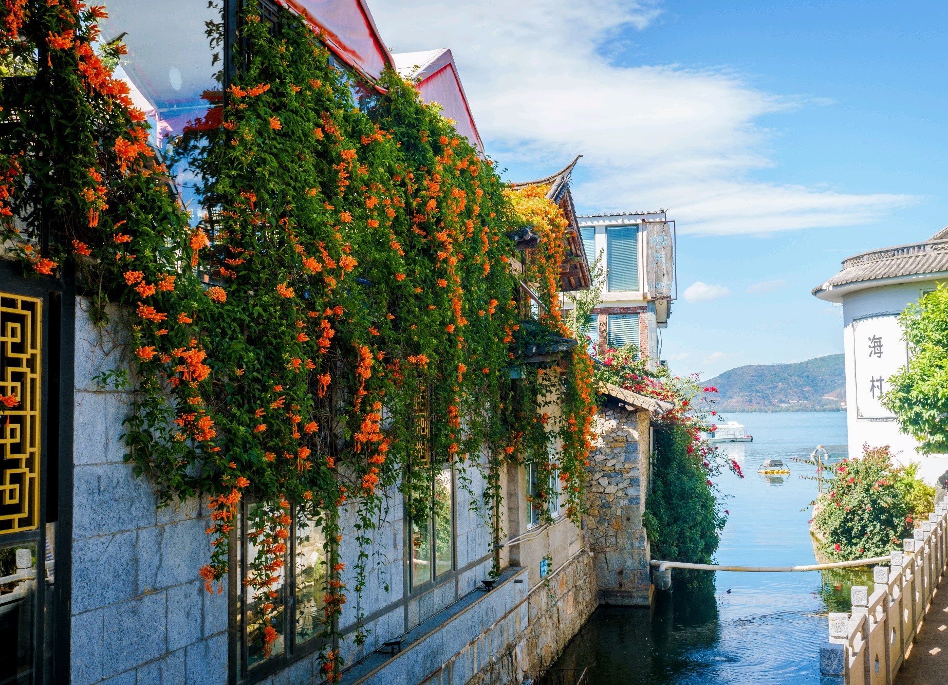 双廊的主要游客居住地,很多有特色的客栈民宿,巷子格局 恰若迷宫。大建旁村背山面海,原以养牛捕鱼为生,随苍山洱海游客增多,传统与现代交错融合,自成风格。