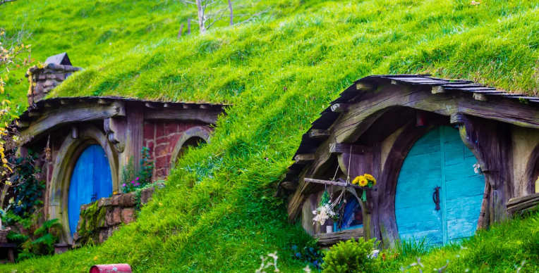 位于新西兰怀卡托地区的玛塔玛塔小镇有着青翠的牧场和绵延起伏的山峦,这里是中土世界中夏尔郡的所在地,霍比屯也就此诞生。尽管电影霍比特人已经拍摄结束后,大部分的村庄都已被拆除,但是随着电影《霍比特人》的拍摄,霍比屯场景得到重建,并作为永久的游览胜地而被保存下去。