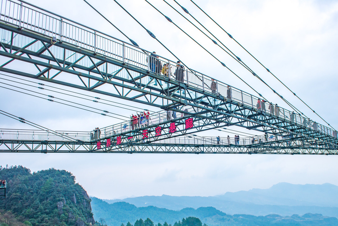 为了确保安全,栈道将铺设3层钢化玻璃,每一面最大承重为600-700千克。