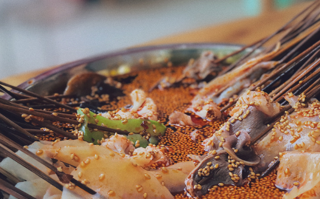 比较出名的如:钵客藤椒钵钵鸡、祥和祥钵钵鸡;钵钵鸡一听其名,就觉得很新奇,“钵钵”其实就是瓦罐,钵外面是画着红黄相间的瓷质龙纹,钵内盛放配以麻辣为主的佐料,菜品在特珠殊加工后用签串制,晾冷浸于各种口味的佐料中,食用时自取自食,除味道悠长外更添情趣盎然。