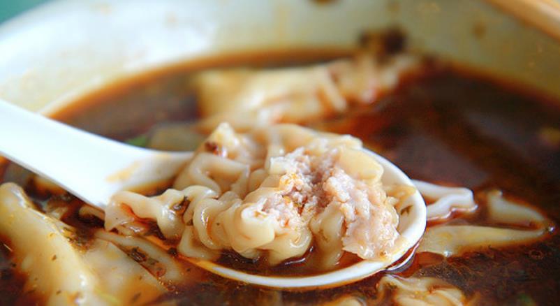 担担面是四川成都和自贡著名的地方传统面食小吃,据说源于挑夫们在街头挑着担担卖面,因而得名。担担面是将面粉擀制成面条,煮熟,舀上炒制的肉末而成。成菜面条细薄,卤汁酥香,咸鲜微辣,香气扑鼻,十分入味。