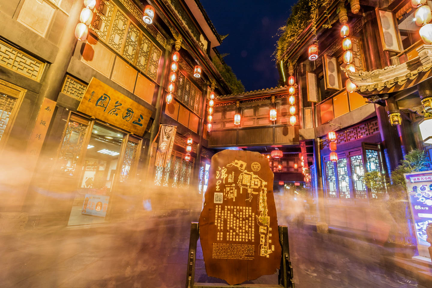 可以欣赏到锦里古街灯火通明、繁华如梦的夜景,看过锦里古街夜景的游客都会啧啧称叹。这里夜里会有小酒吧营业,还有各式各样的成都特色小吃,会有典雅质朴的古风小店,宋代石刻等,可以说是妙趣横生,热闹非凡。