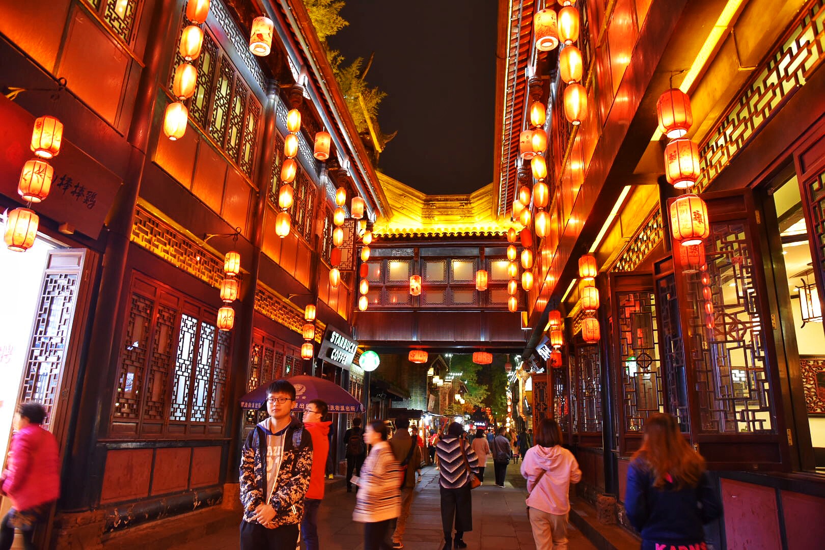 宽窄巷子:宽窄巷子是成都惟一遗留下来的清朝古街道,由宽巷子、窄巷子和井巷子三条平行排列的城市老式街道及其之间的四合院群落组成。来这里,喝茶、吃火锅,感受成都的闲生活、慢生活和新生活。
