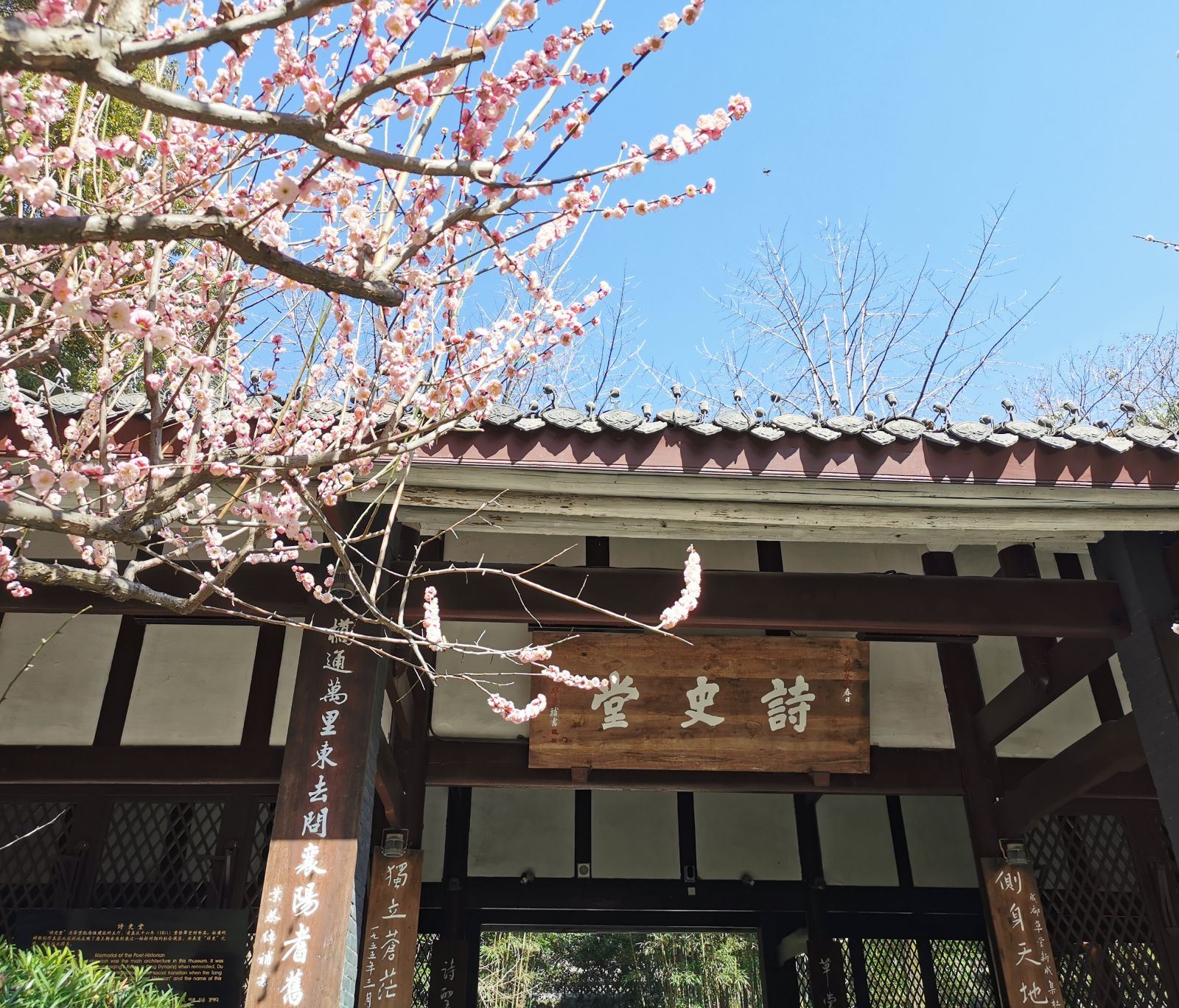 杜甫草堂作为杜甫曾经的栖居地,杜甫草堂已成为很多文人雅士朝拜的地方,园内梅花翠竹交相辉映,暗吐芬芳,从远处忽而飘来一阵悠扬琴音,绝对是一幅绝美的“雪里香梅”的画卷。