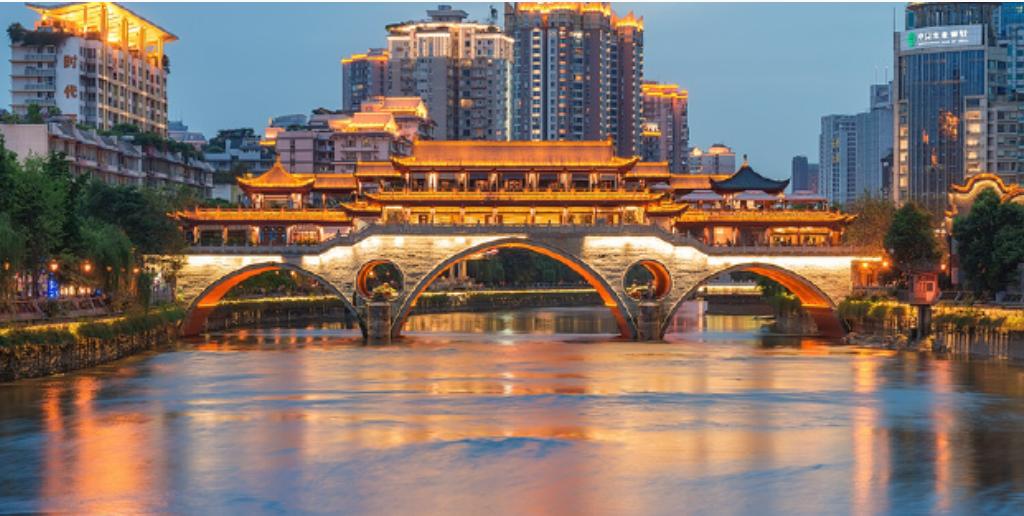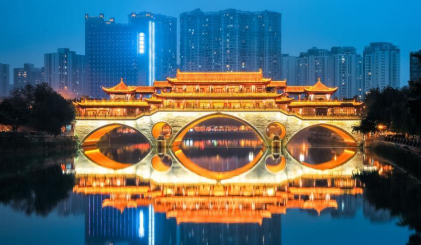 安顺廊桥的夜景,应该说是成都最美丽之一,站在府南河边远眺廊桥,灯光璀璨,倒映在迷人的府南河上,十分靓丽。桥下的府南河在霓虹灯照耀下,显得更加虚幻迷离。