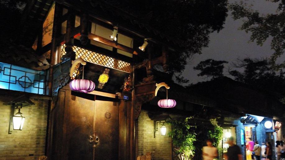 宽窄巷子是民宿文化商业街的形态,即使白天也是游客川流不息。晚上这样的古建筑群再配合古典的灯光效果,整个情景显得独有韵味。就拿锦里来说吧,这条街慢慢走进去,大家会发现晚上这样的古街、古楼、还有客栈、商铺都似乎变成了水彩画,错落有致,再配以耳边声声川剧、还有空气里面川菜酒香味道,瞬间觉得这就是成都这座古城独特味道所在吧!在温柔的夜色里,觉得这一切都是一幅画。