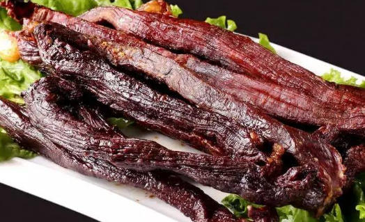 灯影牛肉干灯影牛肉干产于四川省达县地区的南江、通江、平昌、巴中等县,至今已有近100多年的历史。