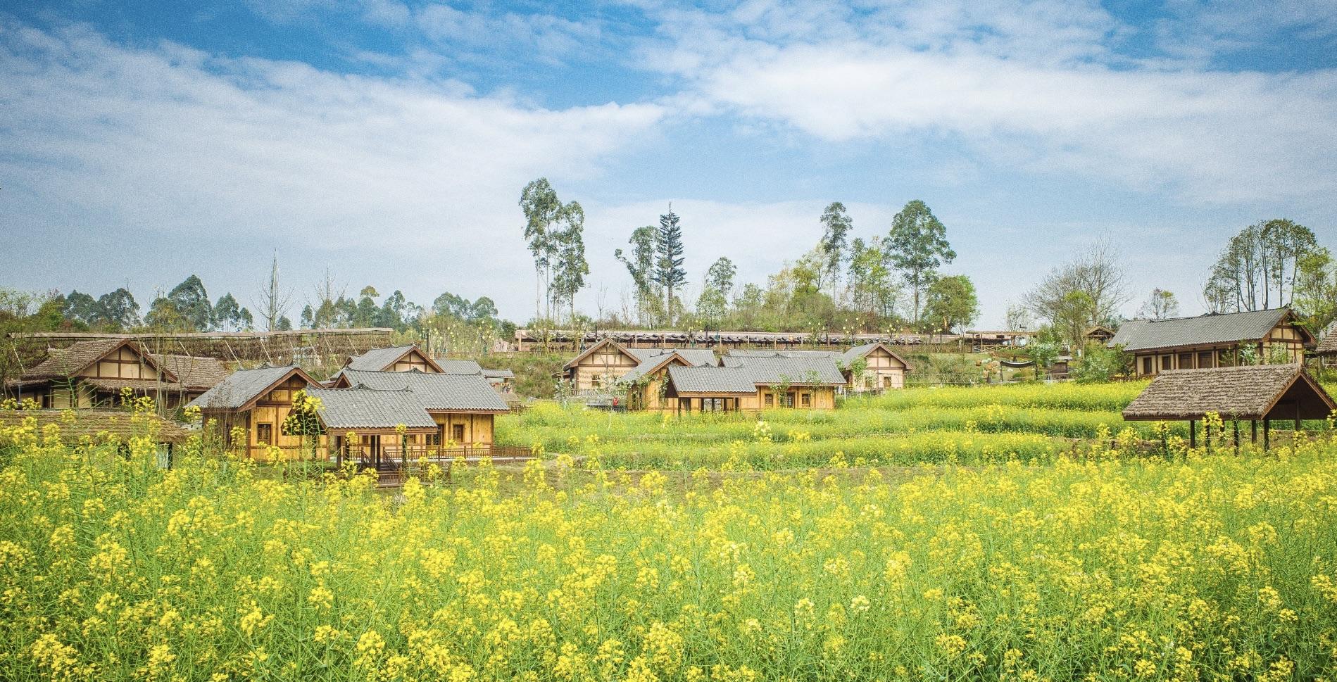 这里创新打造了川江草海、锦城花岛、古佛花溪、武阳茶谷、七彩森林、大河梯田、鹿溪牧场七大主题区域,涵盖了不同场景的40余个田园子项目为孩子、年轻人、长者们,提供了亲近自然、游玩体验田园浪漫生活。