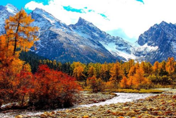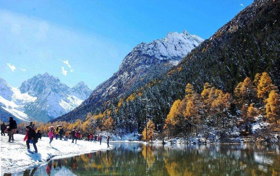 毕棚沟一年四季各有特色,但是观赏时间推荐秋季的9-10月。每年这个时候,沟内枫叶艳红似火,湖光山水,与周围的雪山构成一幅迷人的画卷,五彩斑斓,非常有意境。