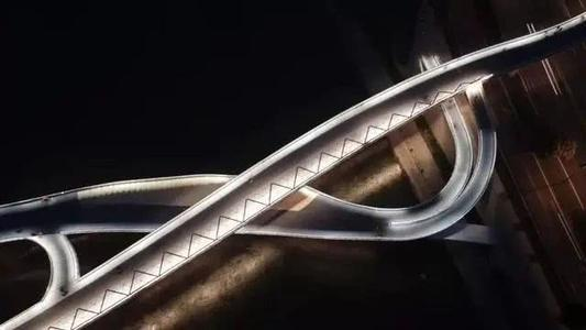 “莫比乌斯环”最直观的形象就是无穷大符号“∞”,和此符号一样,五岔子大桥的上下两缘从成都高新区的锦江一侧延伸,在距离水面最高处交会,又再次分散抵达对岸,远远望去,如龙蛇腾跃。