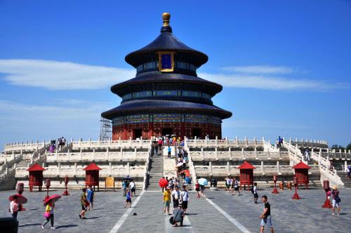 上层中心为一块圆石,外铺扇面形石块九圈,内圈九块,以九的倍数依次向外延展,栏板、望柱也都用九或九的倍数,象征“天”数。天坛坛域平面北为圆形,南为方形,寓“天圆地方”。四周由两重坛墙环护,呈“回”字形。中心为内坛,两重坛墙之间为环状外坛。主要祭坛建筑“祈谷坛”和“圜丘坛”均设于内坛,两坛之间以东西一道大墙相隔,各自独立,自成一体。