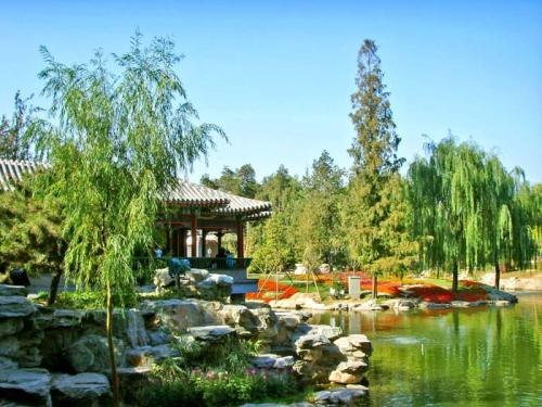 中山公园位于北京市中心紫禁城(故宫)南面,天安门西侧,与故宫一墙之隔。占地23万平方米,是—座纪念性的古典坛庙园林。它原是明清两代的社稷坛,与太庙(今劳动人民文化宫)一起沿袭周代以来“左祖右社”的礼制建造。