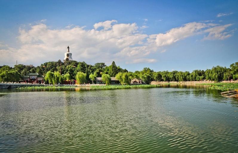 已成为北海标志性建筑的白塔,则位于琼岛的中心高点,颇有主宰全园的气势。团城位于北海公园南端,主体建筑为承光殿,店内供奉有1.5米高的大玉佛,通体镶嵌宝石,光彩夺目,游览时必不可错过。