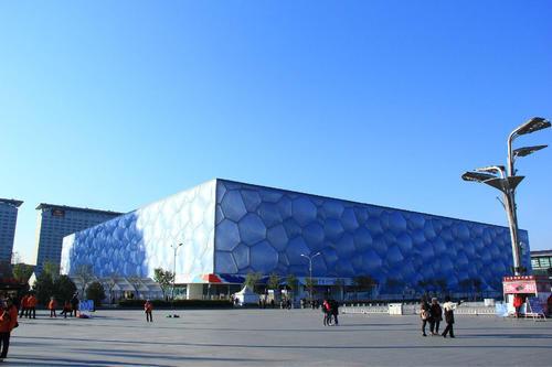国家游泳中心又被称为“水立方”(Water Cube),位于北京奥林匹克公园内,是北京为2008年夏季奥运会修建的主游泳馆,也是2008年北京奥运会标志性建筑物之一。它的设计方案,是经全球设计竞赛产生的“水的立方”([H2O]3)方案。2003年12月24开工,在2008年1月28日竣工。其与国家体育场(俗称鸟巢)分列于北京城市中轴线北端的两侧,共同形成相对完整的北京历史文化名城形象。