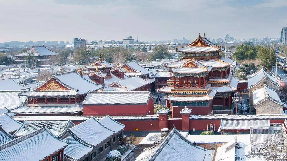 雍和宫(The Lama Temple),位于北京市区东北角,清康熙三十三年(1694年),康熙帝在此建造府邸、赐予四子胤禛,即后来的雍亲王府。雍正三年(1725年),改王府为行宫,称雍和宫,雍正十三年(1735年),雍正帝驾崩,曾于此停放灵柩,因此,雍和宫主要殿堂原绿色琉璃瓦改为黄色琉璃瓦。