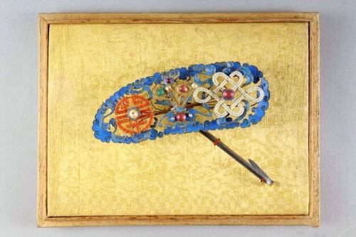 故宫收藏有11,000件雕刻工艺、13,000件其它工艺。在我们的藏品中要精心保管、比较难以保管的就是这种盆景,半米高,枝干是宝石做的、花瓣是玉片做的,支楞起来的那些树叶是象牙染的,染牙。