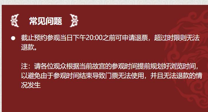 1、预售门票在未使用的情况下,可于预约参观日当天下午20点前在本平台申请退款,超过时限则无法退款。