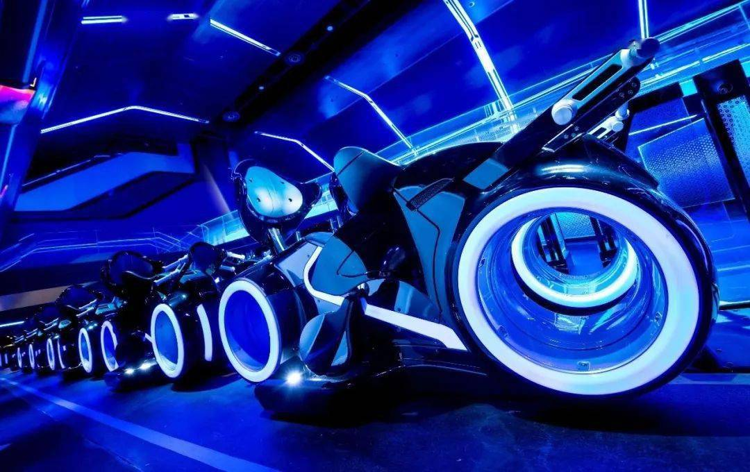 骑摩托车式的过山车,最高时速为120km/h ,但是后来又降速,实际的最高速度在80~100km/h。整个过程在1分钟左右。整个氛围让人感觉很有未来感,刺激紧张,因为不停地有人在你头上划过尖叫。在室外的部分其实并不恐怖,但是进入室内后,有光影效果,有点时空穿梭的感觉,当然,失重感还是有的。不过这种感觉挺奇妙的,速度虽然很快,但是周边的环境很炫酷,身临其境像拍电影一样,非常有意思。