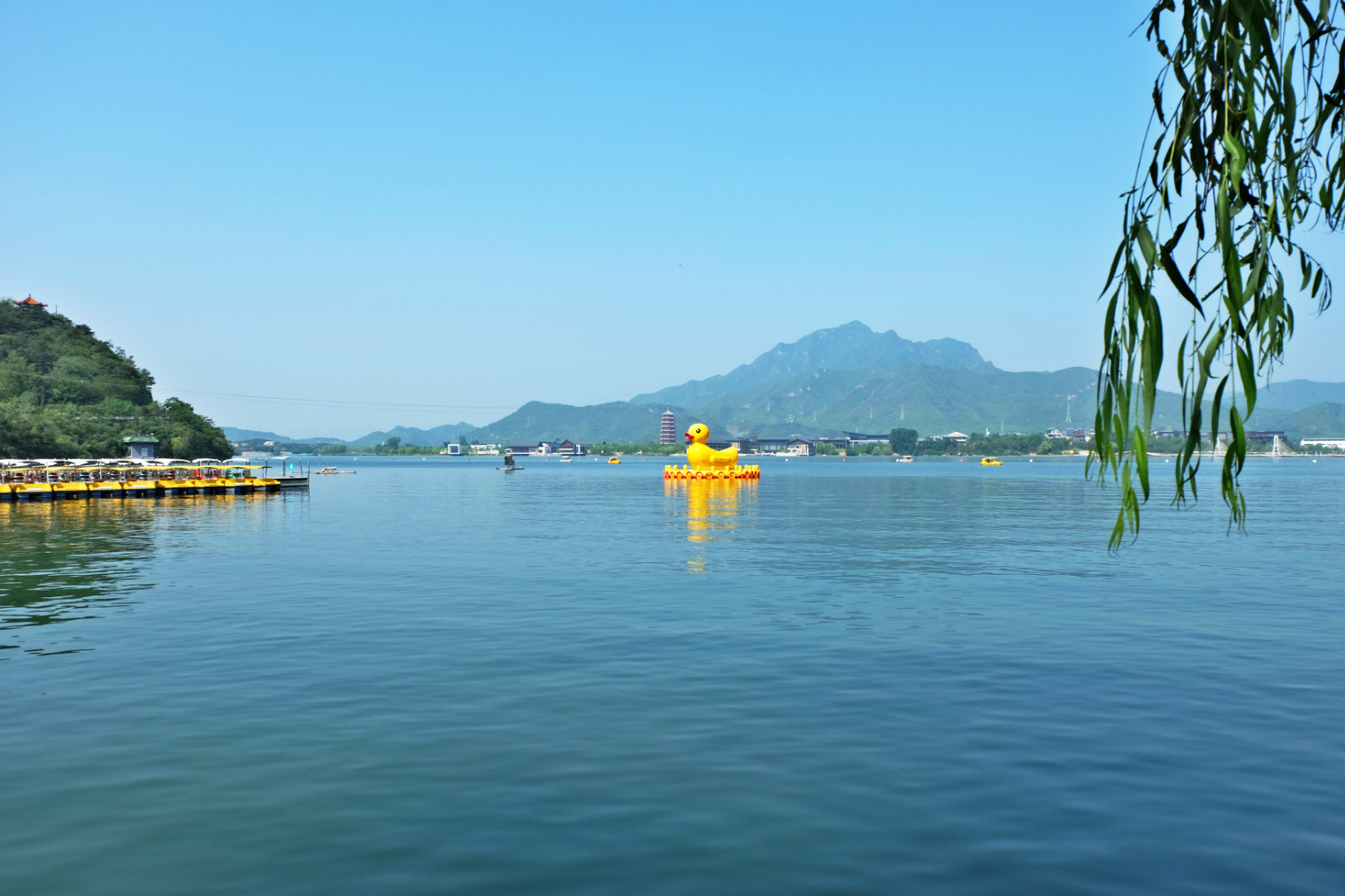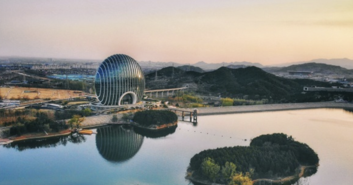 雁栖湖位于北京郊区怀柔城北8公里处的燕山脚下,是以湖面为中心的水陆区域,风光旖旎,湖水清澈。每年春秋两季常有成群的大雁来湖中栖息,故而得名。