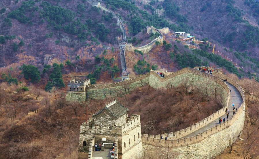 八达岭长城的走势就显得较为险峻,有的台阶几乎九十度直上直下,比较惊险刺激。