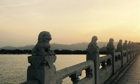 是连接东岸与南湖岛的一座长桥,清乾隆时建,为园内最大的石桥。桥由17个孔券组成,长150米,状若长虹卧波。其造型兼有北京卢沟桥、苏州宝带桥的特点。桥上石雕极其精美,大小共544个。两桥头还有石雕异兽,十分生动。
