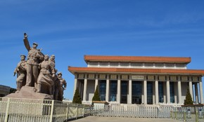 毛主席纪念堂位于人民英雄纪念碑南面,占地面积5.72公顷,总建筑面积33867平方米,始建于1976年11月,1977年9月9日举行落成典礼并对外开放。其主体建筑为柱廊型正方体,南北正面镶嵌着镌刻“毛主席纪念堂”六个金色大字的汉白玉匾额,44根方形花岗岩石柱环抱外廊,雄伟挺拔,庄严肃穆,具有独特的民族风格。