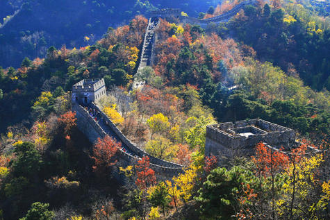 慕田峪长城旅游区群山环抱,风景秀丽。春季,群芳争妍,山花烂漫;夏季,满山青翠,流水潺潺;秋季,红叶漫山,果实累累;冬季,白雪皑皑,银装素裹,一派北国风光,享有“长城慕田峪独秀”。慕田峪长城旅游区内设施齐备,功能完善,可为游客提供全方位的服务。景区内设有登城缆车,运行系统全部自动化,乘坐时安全、舒适、快捷,长城山庄坐落在长城脚下,其建筑风格为仿古式建筑群,庭院古朴典雅,空气清新,景色宜人。
