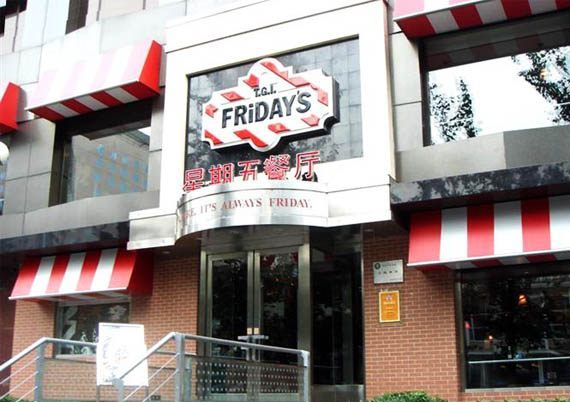 1965年的春天,一家有着红白雨蓬和黄色店标的普通餐厅在纽约第一大道和63街的交叉口处开业了,这就是一家Friday's(星期五)餐厅,它的主人是一个香水商人,全世界第一家美式休闲连锁餐厅,餐厅室内装饰展示了美国近代不同时期的风土人情,每一件装饰品的背后都有着催人泪下或诙谐幽默的小故事……30年之后,Friday's已经在几十个国家里开了400多家分店。主要菜品有碳烧猪排、纽奥良鸡肉沙拉、炭烤排骨、肋眼牛排、纽约牛排、星期五汉堡、凯撒沙拉、彩虹沙拉……