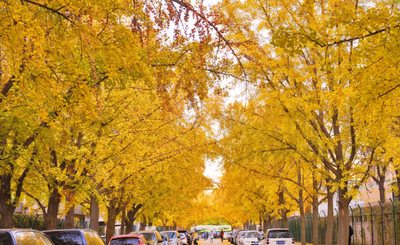 三里屯东五街是北京的使馆区,道路两旁齐刷刷地种着两排银杏树,从街西口到街东口。这里的秋天变成了个童话世界,金黄的银杏加上带有异国风情的建筑,实在美得一塌糊涂。