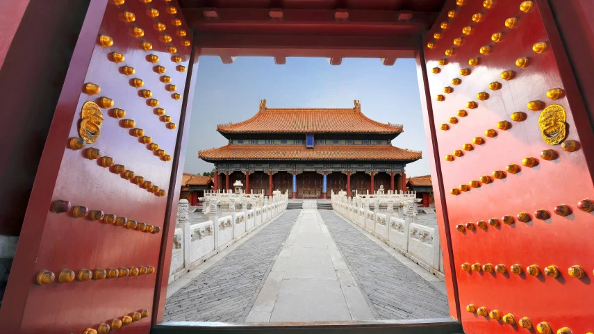北京故宫于明成祖永乐四年(1406年)开始建设,以南京故宫为蓝本营建,到永乐十八年(1420年)建成。它是一座长方形城池,南北长961米,东西宽753米,四面围有高10米的城墙,城外有宽52米的护城河。紫禁城内的建筑分为外朝和内廷两部分。外朝的中心为太和殿、中和殿、保和殿,统称三大殿,是国家举行大典礼的地方。内廷的中心是乾清宫、交泰殿、坤宁宫,统称后三宫,是皇帝和皇后居住的正宫。