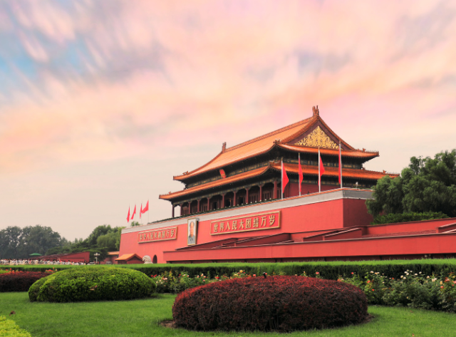 天安门始建于明朝永乐十五年,设计者为明代的御用建筑匠师蒯祥,由城台和城楼两部分组成,是明清两代北京皇城的正门。1949年10月1日,在这里举行了中华人民共和国的开国大典,由此被设计入国徽。1961年,天安门被中华人民共和国国务院公布为第一批全国重点文物保护单位。