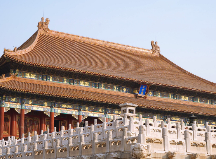 北京故宫是世界上现存规模最大、保存最为完整的木质结构古建筑之一,是国家AAAAA级旅游景区,1961年被列为第一批全国重点文物保护单位;1987年被列为世界文化遗产。故宫有四个大门,正门名为午门,其平面为凹形。午门后有五座汉白玉拱桥通往太和门。东门名东华门,西门名西华门,北门名神武门。故宫的四个城角都有角楼,高27.5米,十字屋脊。故宫宫城周围环绕着高12米,长3400米的宫墙,形式为一长方形城池,墙外有52米宽的护城河环绕,形成一个森严壁垒的城堡。故宫有4个门,正门名午门,东门名东华门,西门名西华门,北门名神武门。面对北门神武门,有用土、石筑成的景山。在整体布局上,景山可说是故宫建筑群的屏障。
