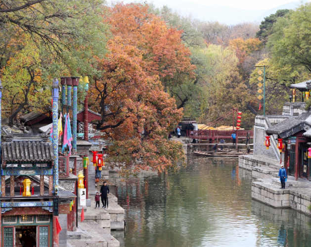 四、昆明湖昆明湖是清代皇家诸园中最大的湖泊,湖中一道长堤──西堤,自西北逶迤向南。西堤及其支堤把湖面划分为三个大小不等的水域,每个水域各有一个湖心岛。这三个岛在湖面上成鼎足而峙的布列,象征着中国古老传说中的东海三神山──蓬莱、方丈、瀛洲。西堤以及堤上的六座桥是有意识地摹仿杭州西湖的苏堤和“苏堤六桥”。西堤一带碧波垂柳,自然景色开阔,园外数里的玉泉山秀丽山形和山顶的玉峰塔影排闼而来,被收摄作为园景的组成部分。